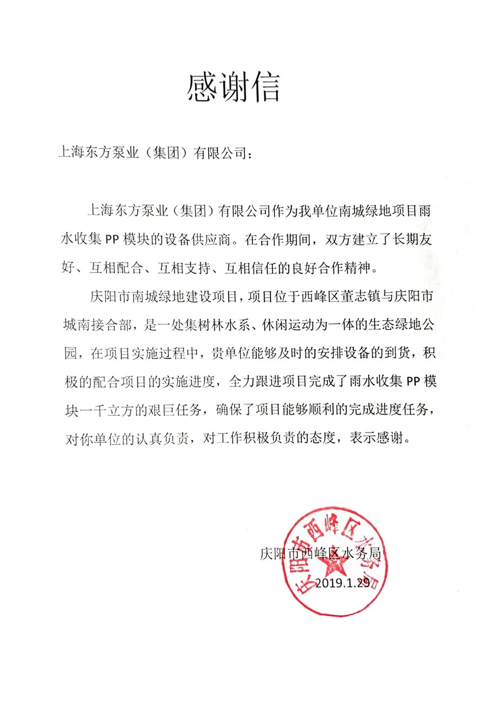 伴随海绵城市顶层设计的出台,设计理念的厘定、规范的制定,雨水收集系统被广泛设计应用于地铁轨交车辆段、高架站、公园绿地、市政建设、公用场馆、新建厂房、工业园区、医院学校、房地产等众多建设领域。东方泵业作为雨水工程的系统分包商、雨水系统全系列的产品均为自主研发生产(包含模块,水泵,水箱,控制柜,压力过滤设备等),项目配套施工均为东方泵业自有工程部完成,在武夷新区观光旅游轨道交通仙店车辆段,西咸新区智轨示范线1号线工程(斗门~欢乐谷),包头市青山区奥林匹克公园、庆阳城南绿地、陕西师范大学、西安南三环长安立交地下调蓄库工程、晋城人民医院、铜川体育馆等项目中均得到了客户的认可与赞赏。为客户提供有价值的产品和系统解决方案,满足客户核心需求一直是东方泵业孜孜不倦的追求。