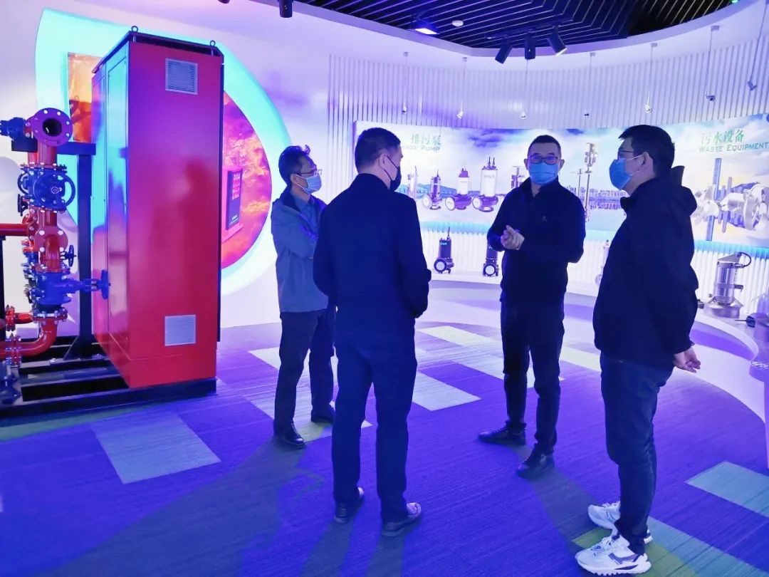 吴理事长一行首先参观了东方泵业市政、水利、环保、消防、民建、二供等相关设备,对东方泵业广泛的产品应用领域、先进的加工技术、标准化的生产流程和过硬的产品品质等给予了积极的肯定和赞许。