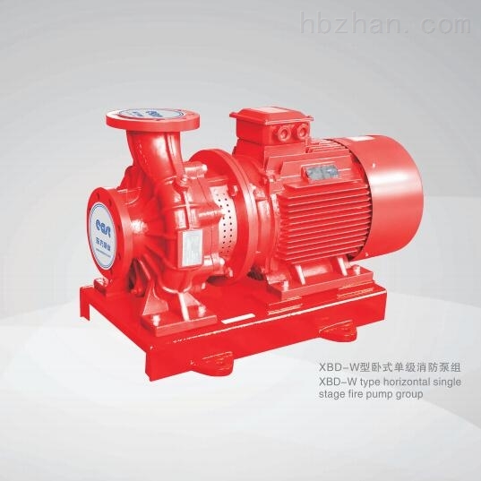 XBD-W型卧式电动机消防泵组(卧式单级消防泵组)是我公司根据消防泵标准及消防产品的强制认证要求而设计开发的离心泵消防泵组,其性能、技术条件符合国家GB6245《消防泵》及GB50974《消防供水及消火栓系统技术规范》标准的相关要求。