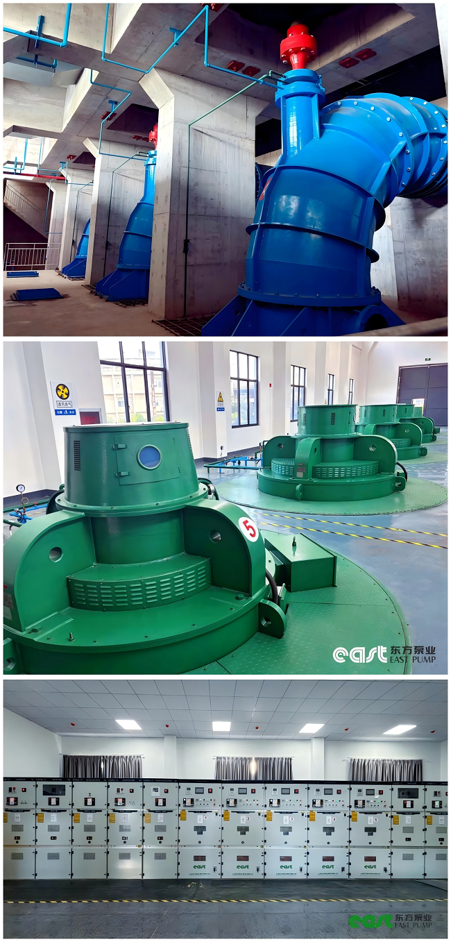 该项目于2022年8月19日由东方泵业成功中标,提供立式轴流泵机组及一体化软启动控制柜等全套设备。